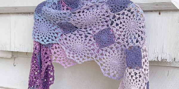 Je te présente Light Warmth, un modèle de châle aussi moelleux qu’un nuage, créé par Marilyn Coleman.
