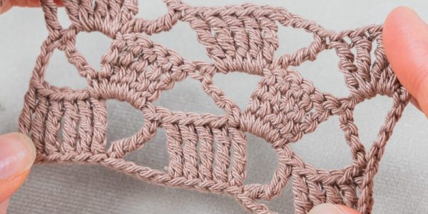 Le point Diamond Mesh au crochet, ou point en maille losange, est un point ajouré très simple qui se construit uniquement avec des mailles serrées et des mailles en l’air.